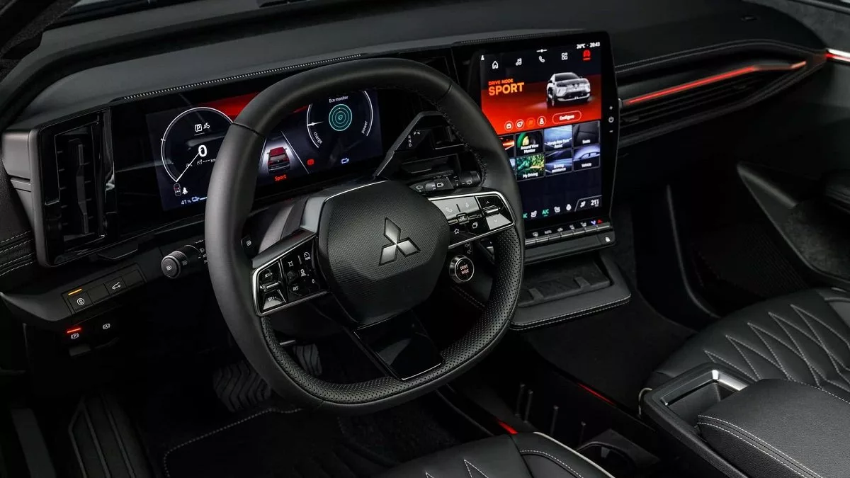 درون کابین میتسوبیشی اکلیپس کراس، تمایزها کمتر هستند و میتوان نشانههایی از طراحی رنو را مشاهده کرد. دو صفحه نمایش 12.3 اینچی کلاستر و 12 اینچی سیستم سرگرمی همچنان درون خودرو مشاهده میشوند. تریم داشبورد و روکش جدید صندلیها، ظاهر اکلیپس کراس را نسبت به رنو سنیک E-Tech متمایز میکنند. در نسخههای پرچمدار یک سانروف پانوراما با فیلم الکتروکرومیک اضافه شده است که میزان شفافیت شیشه را با لمس یک دکمه تنظیم میکند.