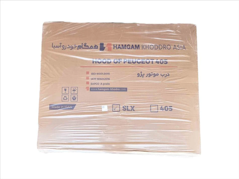 کاپوت پژو 405 SLX برند همگام خودرو آسیا، تولید شده با ورق DC04 فوق کشش با استاندارد خودروساز، دارای کیفیت ساخت بالا و رنگ استر کورهای. خرید مطمئن از بازرگانی صحتبخش.